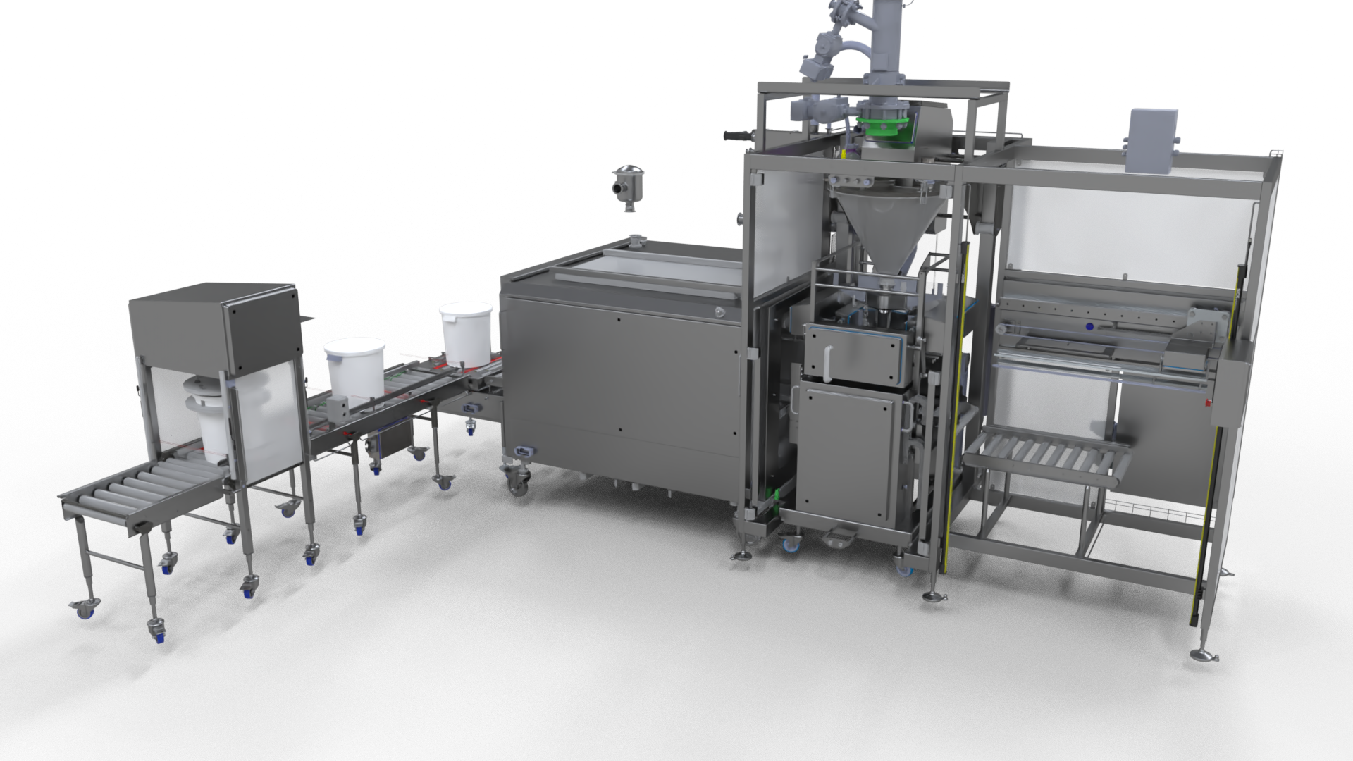 Our design office is involved in tailor-made design projects, from stand-alone machines to complete packaging lines integrating dosing/filling (powder products), weighing, vacuuming, and sealing functions.